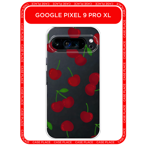 Чехол на Google Pixel 9 Pro XL / Гугл Пиксель 9 Про XL с принтом Вишни паттерн 2, прозрачный