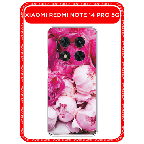 Чехол на Xiaomi Redmi Note 14 Pro 5G / Редми Нот 14 Про 5G с принтом Пионы розово-белые