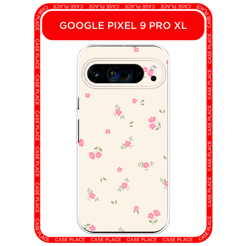 Чехол на Google Pixel 9 Pro XL / Гугл Пиксель 9 Про XL с принтом Розовые цветочки на бежевом