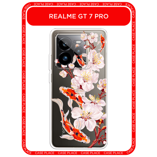 Чехол на Realme GT 7 Pro / Реалми GT 7 Про с принтом Карпы и сакура, прозрачный
