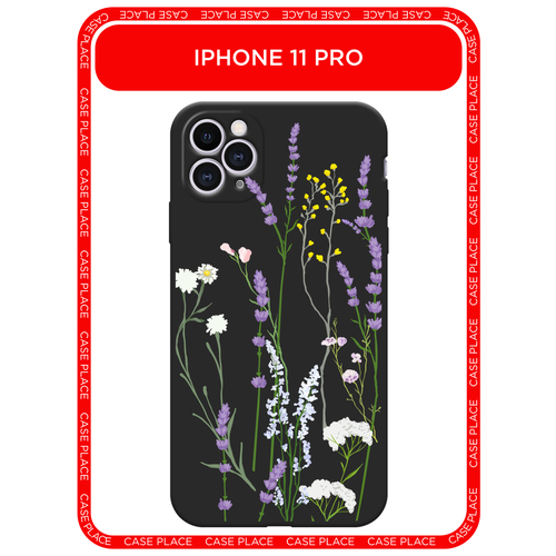 Черный матовый чехол на Apple iPhone 11 Pro / Айфон 11 Про с принтом Полевые цветы