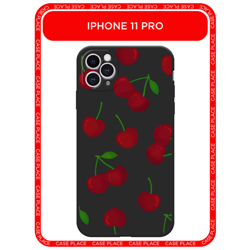Черный матовый чехол на Apple iPhone 11 Pro / Айфон 11 Про с принтом Вишни паттерн 2