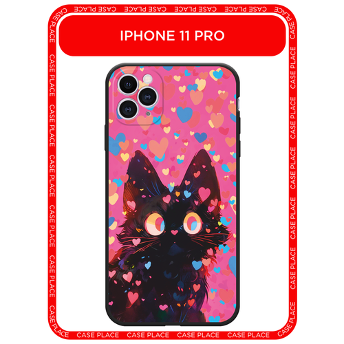 Черный матовый чехол на Apple iPhone 11 Pro / Айфон 11 Про с принтом Кошачья романтика
