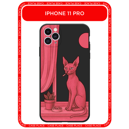 Черный матовый чехол на Apple iPhone 11 Pro / Айфон 11 Про с принтом Розовый сфинкс