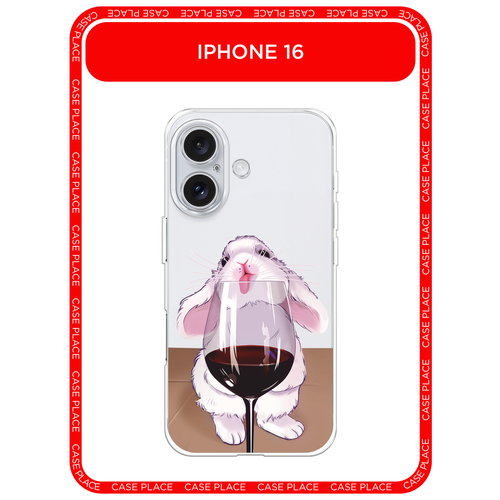 Чехол на Apple iPhone 16 / Айфон 16 с принтом Кролик облизывает бокал, прозрачный