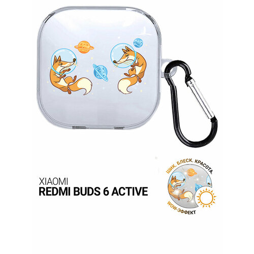 Чехол на Xiaomi Redmi Buds 6 Active с принтом "CosmoFoxes" прозрачный