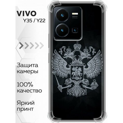 Дизайнерский силиконовый с усиленными углами чехол для Виво У22 / Vivo Y22 Герб России принт
