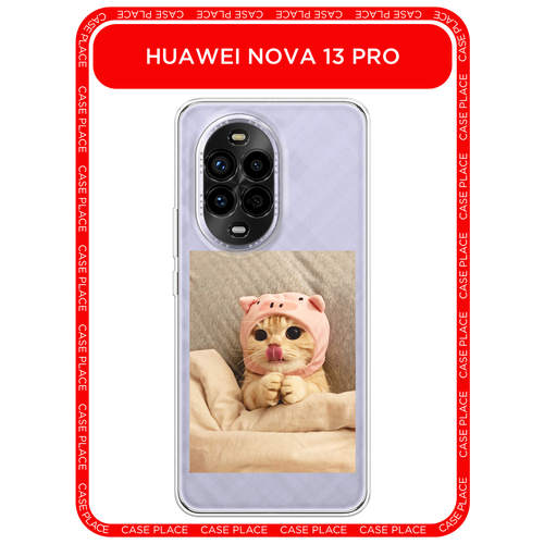 Чехол на Huawei Nova 13 Pro / Хуавей Нова 13 Про с принтом Котик в розовой шапочке, прозрачный