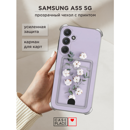 Чехол на Samsung Galaxy A55 5G (Самсунг Галакси А55 5G) с картой и принтом Веточка хлопка