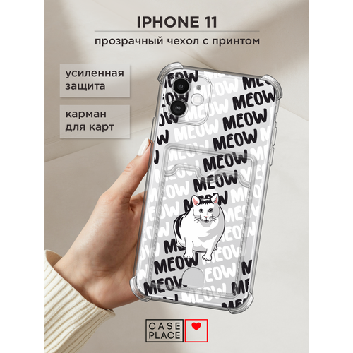 Чехол на Apple iPhone 11 (Айфон 11) с картой и принтом Кот мем