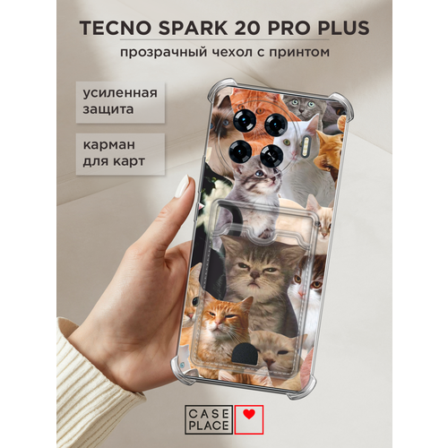 Чехол на Tecno Spark 20 Pro Plus (Текно Спарк 20 Про Плюс) с картой и принтом Мемные коты