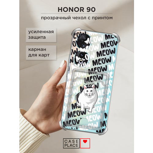 Чехол на Honor 90 (Хонор 90) с картой и принтом Кот мем