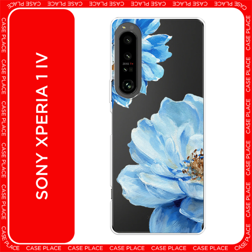 Чехол на Sony Xperia 1 IV / Сони Иксперия 1 IV с принтом Голубые клематисы, прозрачный