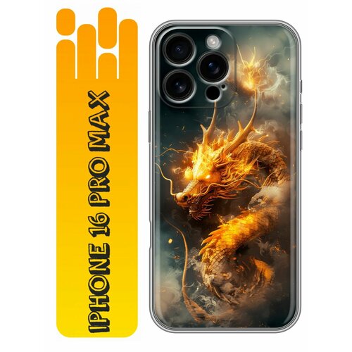 Чехол для Iphone 16 Pro Max с принтом Золотой дракон (Айфон 16 Про Макс)