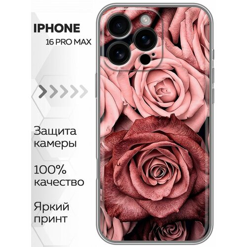 Чехол для Iphone 16 Pro Max с принтом Цветы розы (Айфон 16 Про Макс)
