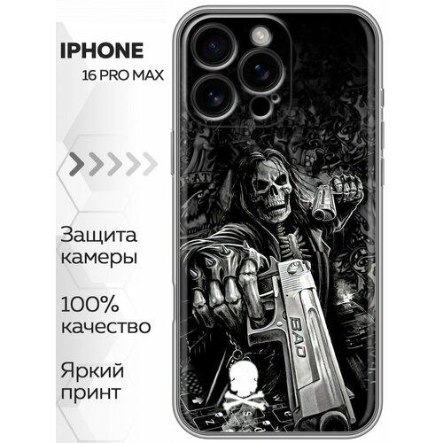Чехол для Iphone 16 Pro Max с принтом Скелет и череп (Айфон 16 Про Макс)