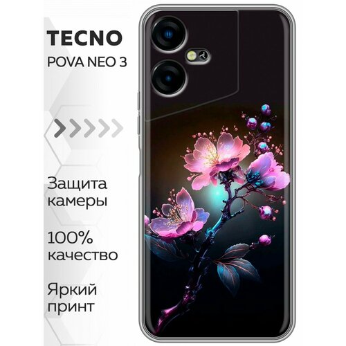 Чехол для Tecno Pova Neo 3 с принтом Женский принт цветы (Техно Пова Нео 3)