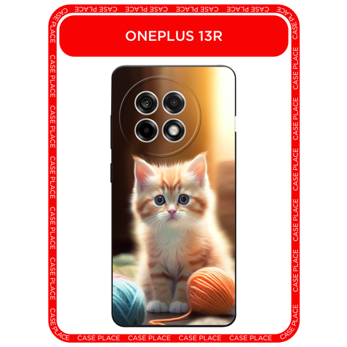 Черный матовый чехол на Oneplus 13R/Ace 5/5 Pro / Ван Плас 13R/Асе 5/5 Про с принтом Рыжий котёнок с клубком