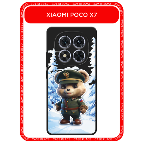 Черный матовый чехол на Poco X7/Xiaomi Redmi Note 14 Pro 5G / Поко X7 с принтом Мишка в форме 3