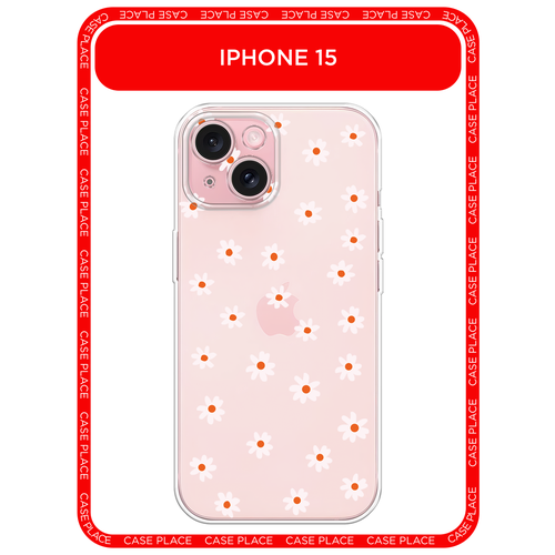 Чехол на Apple iPhone 15 / Айфон 15 с принтом Ромашки, прозрачный
