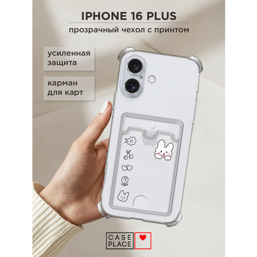 Чехол на Apple iPhone 16 Plus (Айфон 16 Плюс) с картой и принтом Пушистый белый зайчик