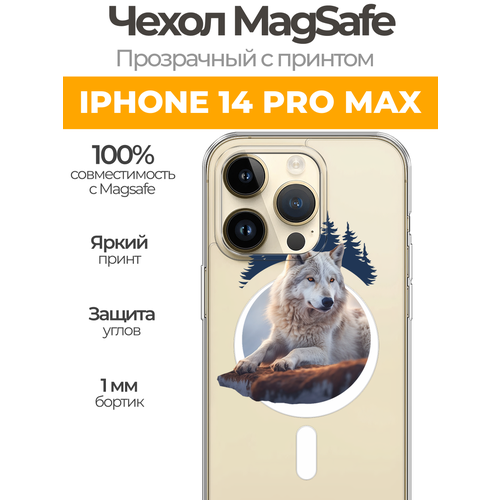 Чехол на Айфон 14 Про Макс (Apple iPhone 14 Pro Max) MagSafe с магнитом и принтом "Лежащий волк"
