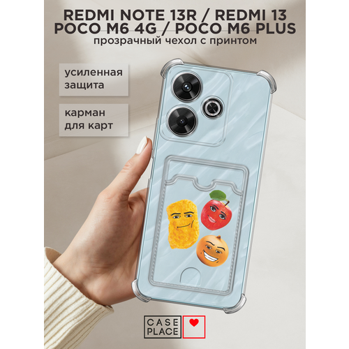 Чехол на Xiaomi Redmi Note 13R/Redmi 13/Poco M6 4G/M6 Plus (Сяоми Редми Ноут 13R/Редми 13/Поко М6 4G/M6 Плюс) с картой и принтом Овощи с лицами из ТикТока