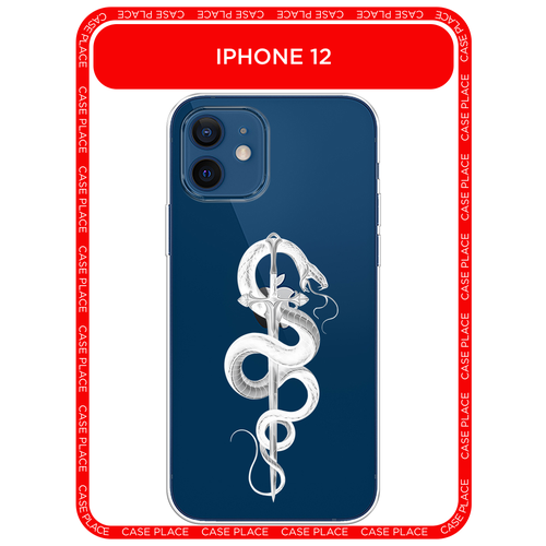 Чехол на Apple iPhone 12/12 Pro / Айфон 12/12 Про с принтом Змея с мечом белая, прозрачный