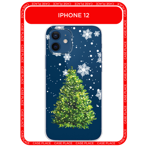 Чехол на Apple iPhone 12/12 Pro / Айфон 12/12 Про с принтом Елка со снежинками, прозрачный