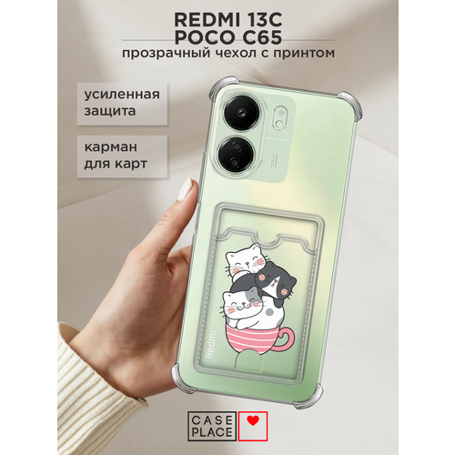 Чехол на Xiaomi Redmi 13C/Poco C65 (Сяоми Редми 13C/Поко С65) с картой и принтом Коты в чашке