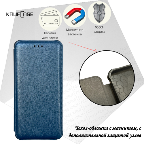 Тонкий и противоударный чехол-книжка Realme 10 4G (RMX3630) (6.4"), темно-синий. Текстура под кожу; Вырез под динамик; Карман для карты