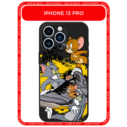 Черный матовый чехол на Apple iPhone 13 Pro / Айфон 13 Про с принтом Том, Джерри и кроссовок