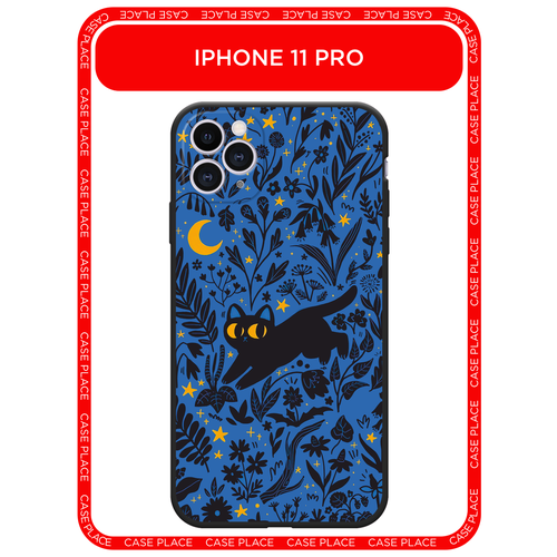 Черный матовый чехол на Apple iPhone 11 Pro / Айфон 11 Про с принтом Ночной котик