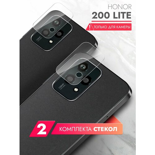 Защитное стекло на Камеру для Honor 200 Lite (Хонор 200 Лайт) , 2 штуки, (гибридное: пленка+стекловолокно), прозрачное силиконовая клеевая основа тонкое Hybrid Glass, Brozo