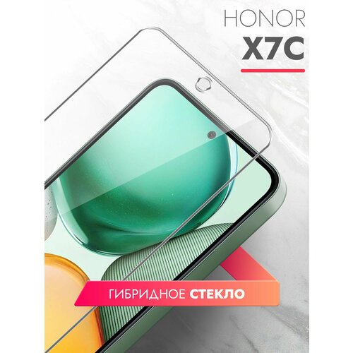 Защитное стекло для Honor X7c на Экран, (гибридное: пленка+стекловолокно), прозрачное силиконовая клеевая основа тонкое Hybrid Glass, Brozo