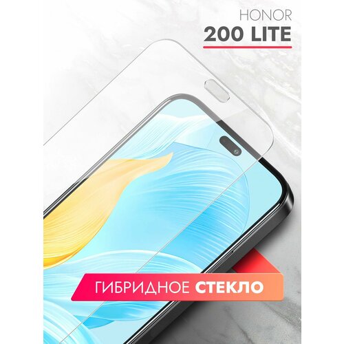 Защитное стекло для Honor 200 Lite (Хонор 200 Лайт) на Экран, (гибридное: пленка+стекловолокно), прозрачное силиконовая клеевая основа тонкое Hybrid Glass, Brozo