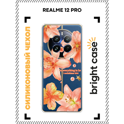 Чехол на Realme 12 Pro/Realme 12 Pro Plus / Реалми 12 Про/Реалми 12 Про Плюс с принтом Оранжевые цветы, прозрачный
