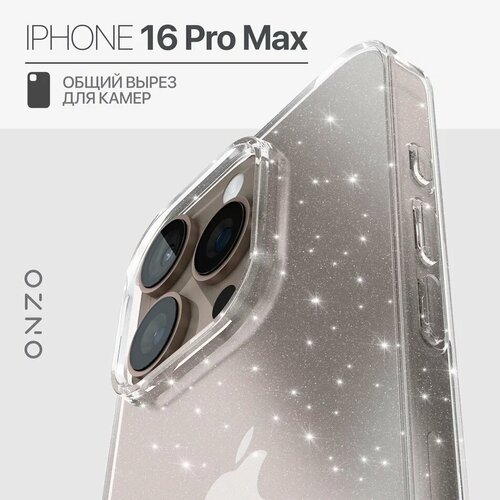 Блестящий чехол на iPhone 16 Pro Max / Айфон 16 Про Макс бампер тонкий, прозрачный