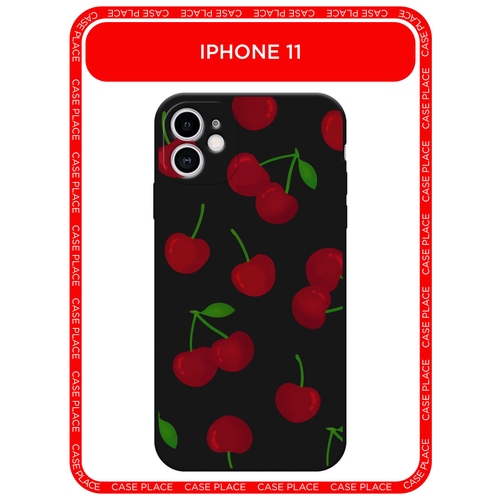Черный матовый чехол на Apple iPhone 11 / Айфон 11 с принтом Вишни паттерн 2