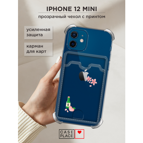 Чехол на Apple iPhone 12 mini (Айфон 12 Мини) с картой и принтом Персиковый соджу