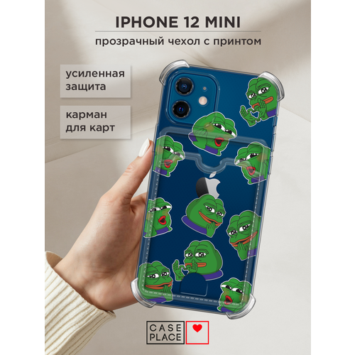 Чехол на Apple iPhone 12 mini (Айфон 12 Мини) с картой и принтом Pepe frog heart pattern