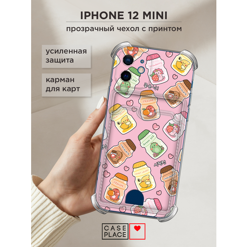 Чехол на Apple iPhone 12 mini (Айфон 12 Мини) с картой и принтом Корейский мишка