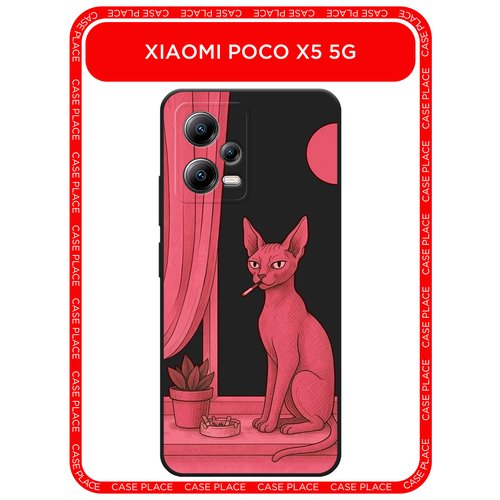Черный матовый чехол на Xiaomi Poco X5 5G / Сяоми Поко X5 5G с принтом Розовый сфинкс