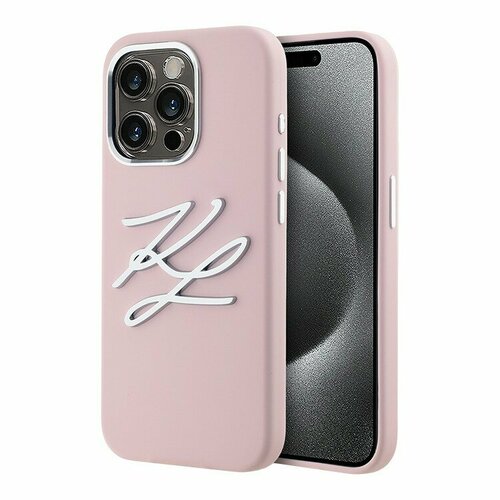 Karl Lagerfeld для iPhone 15 Pro Max чехол Liquid Silicone Metal Logo Initials Hard Pink