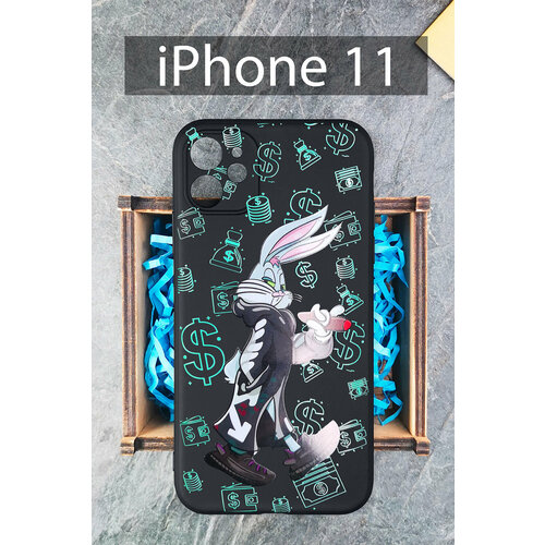 Силиконовый защитный чехол Заяц Банни неон для iPhone 11 / Айфон 11