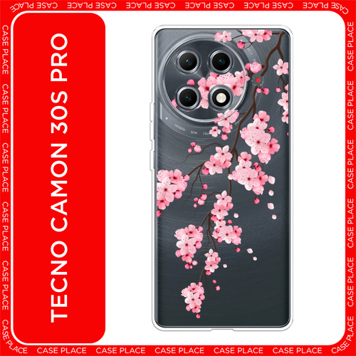 Чехол на Tecno Camon 30S Pro / Текно Камон 30S Про с принтом Розовая сакура, прозрачный