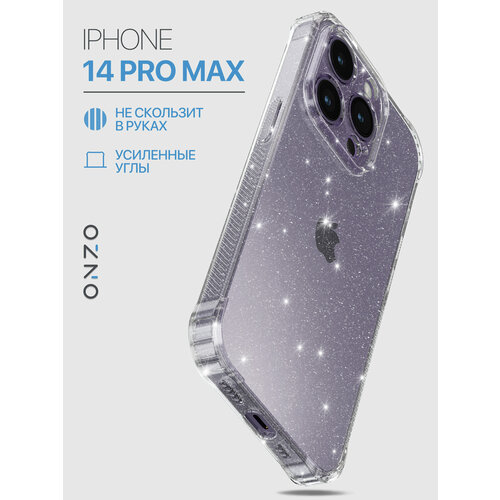 Блестящий чехол для iPhone 14 Pro Max / Айфон 14 Про Макс с усиленными углами, прозрачный