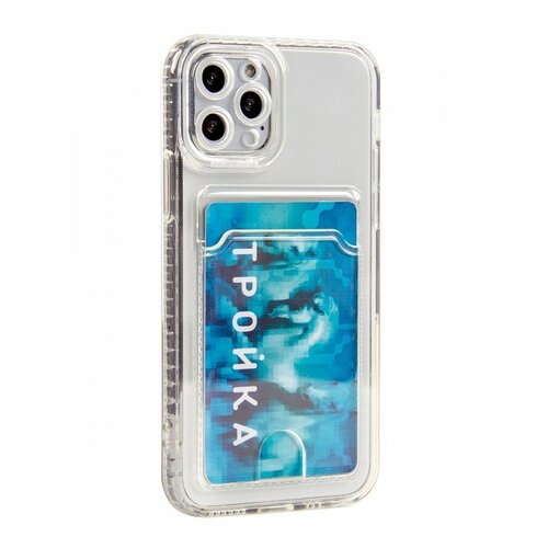 Силиконовый противоударный чехол с картхолдером/карманом для карт и защитой камеры для iPhone 11Pro Прозрачный