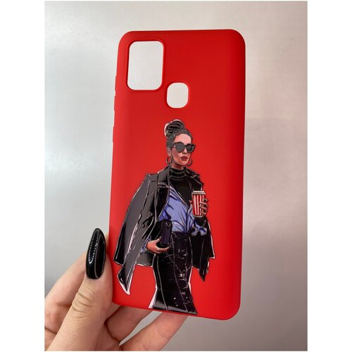 Силиконовый чехол для Samsung Galaxy A21S с рисунком "Девушка с кофе"