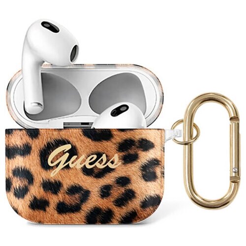 Чехол с карабином CG Mobile Guess TPU для AirPods 3, цвет золотой леопард